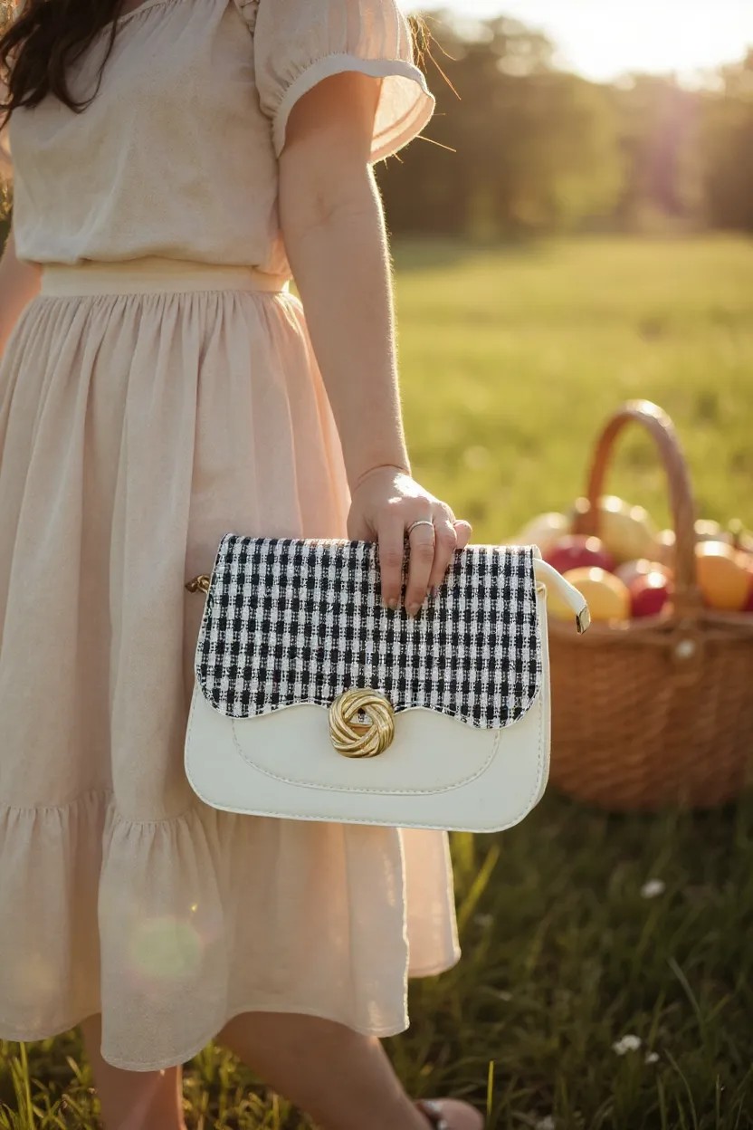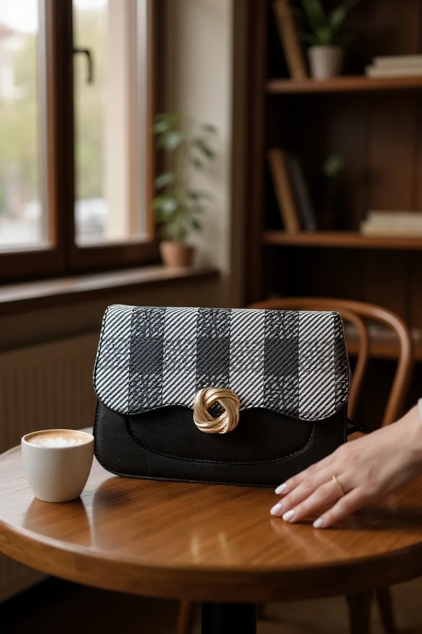 أناقة كلاسيكية بلمسة عصرية: شنطة كتف بنقشة كاروهات مميزة وقفل ذهبي فاخر